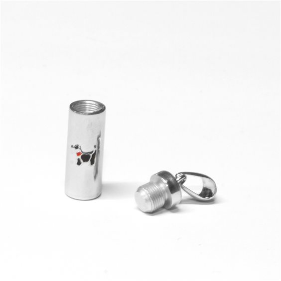 Un monile unico nel suo genere, ideato per custodire le nostre memorie, preservandole inalterate nel tempo e regalando ad ogni persona un ricordo sempre vivo e vicino. E' un prodotto a marchio "Made in Italy", realizzato interamente in argento 925%, nickel free e anallergico. Il ciondolo è composto da due parti: Un tappo rifinito con una filettatura a tenuta stagna, che lo rende adatto anche per conservare essenze e profumi. Un contenitore ricavato da un attento e preciso lavoro di tornitura di un cilindro massiccio in argento 925%, un materiale nobile ed estremamente versatile.